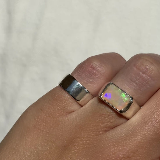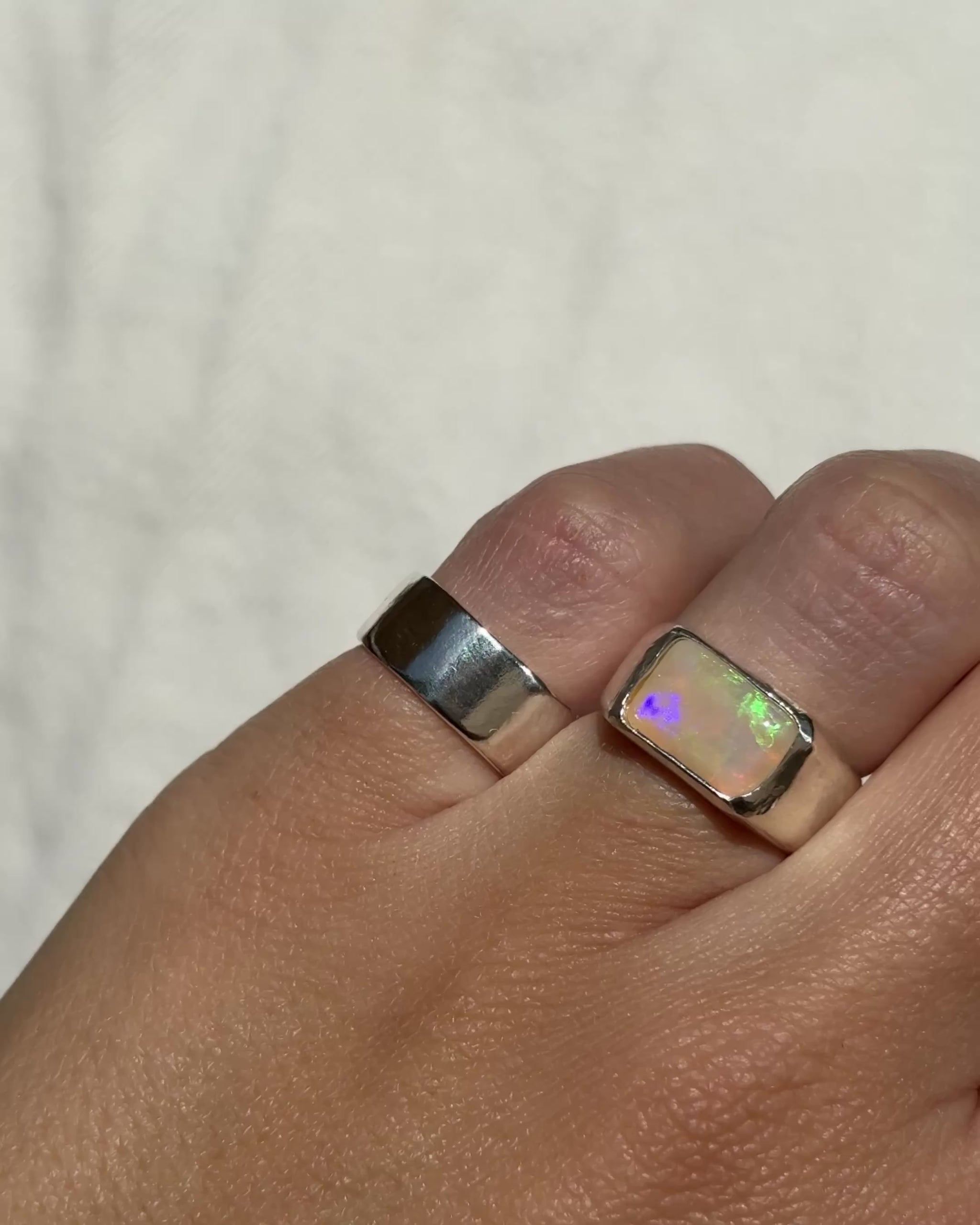 One of a kind handmade ring with a crystal opal set in sterling silver.