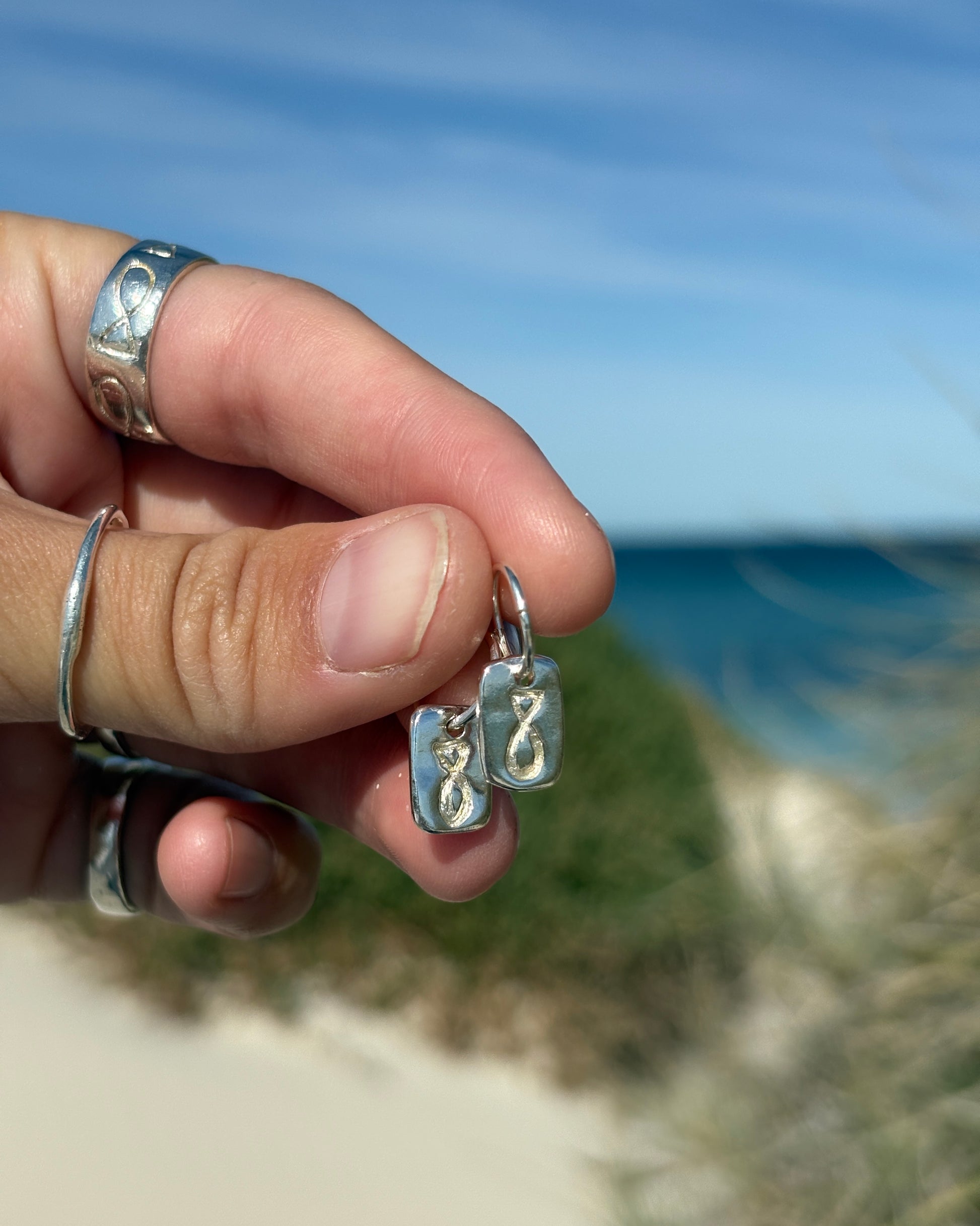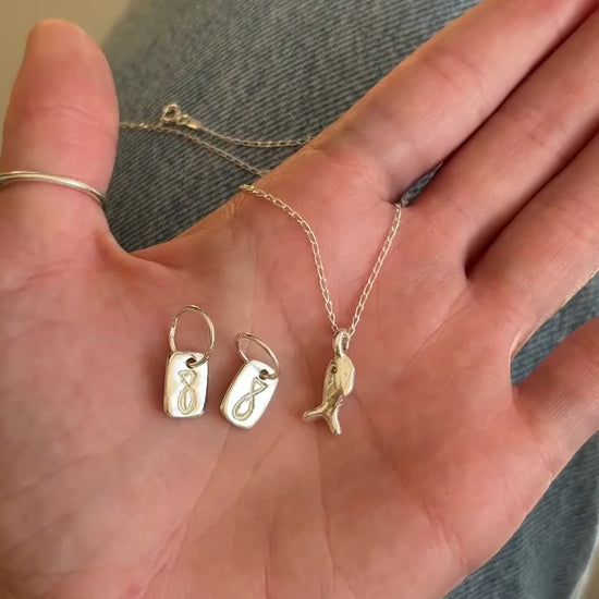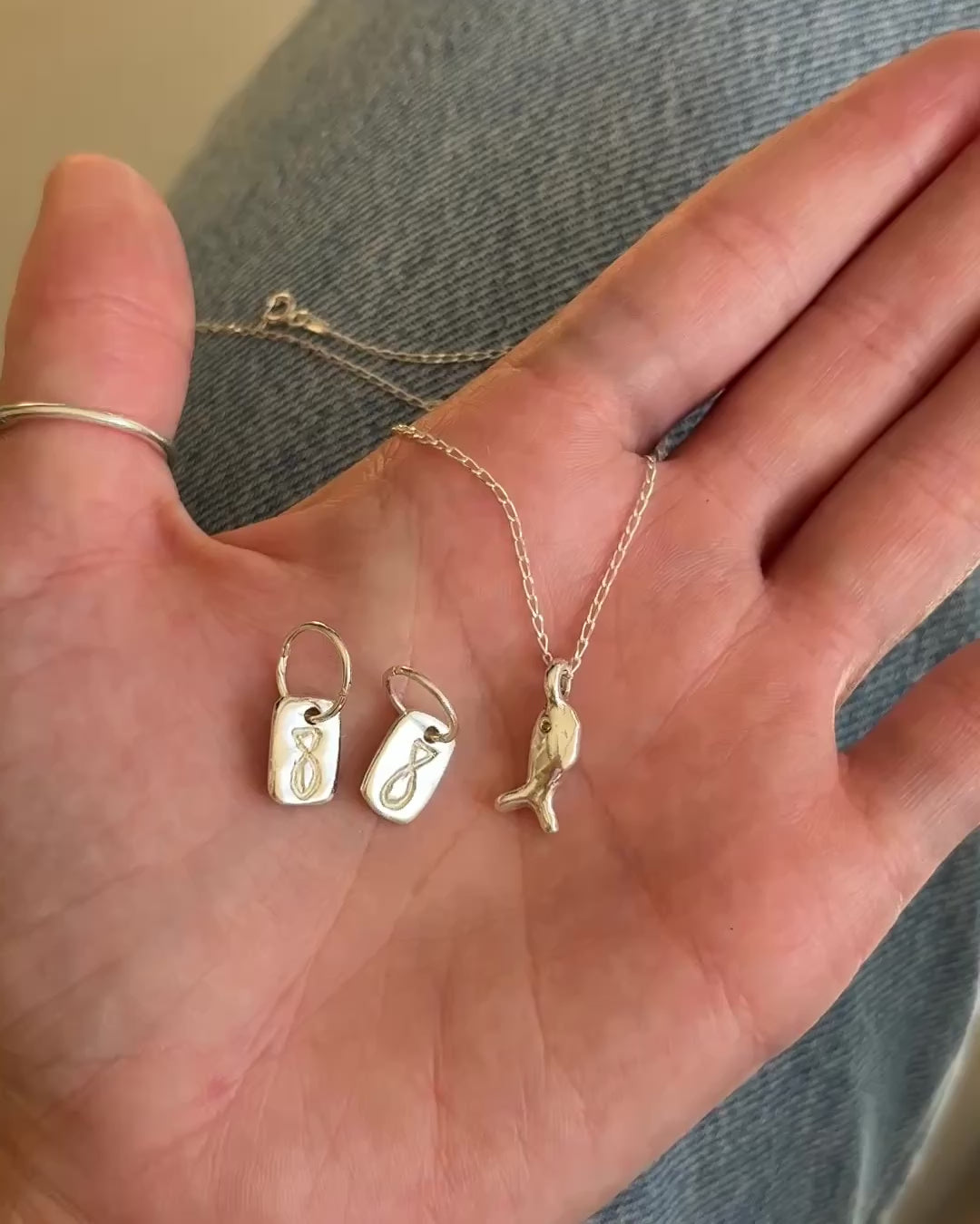 Handmade sterling silver earrings, engraved with a sardine fish.