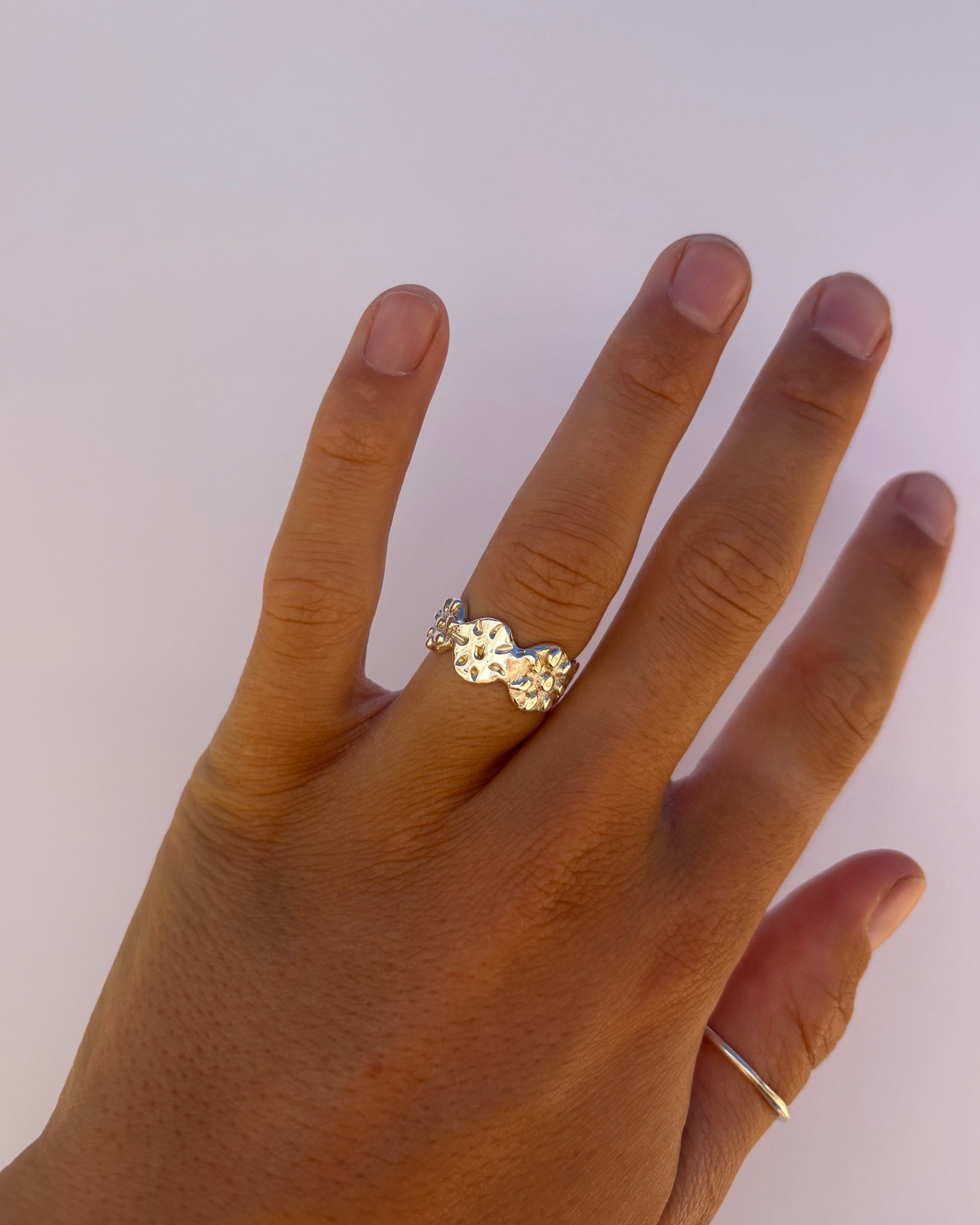 The Seabloom Ring is inspired by ocean tides and blooming coral, its a hand crafted sterling silver piece that captures the organic beauty of the sea.